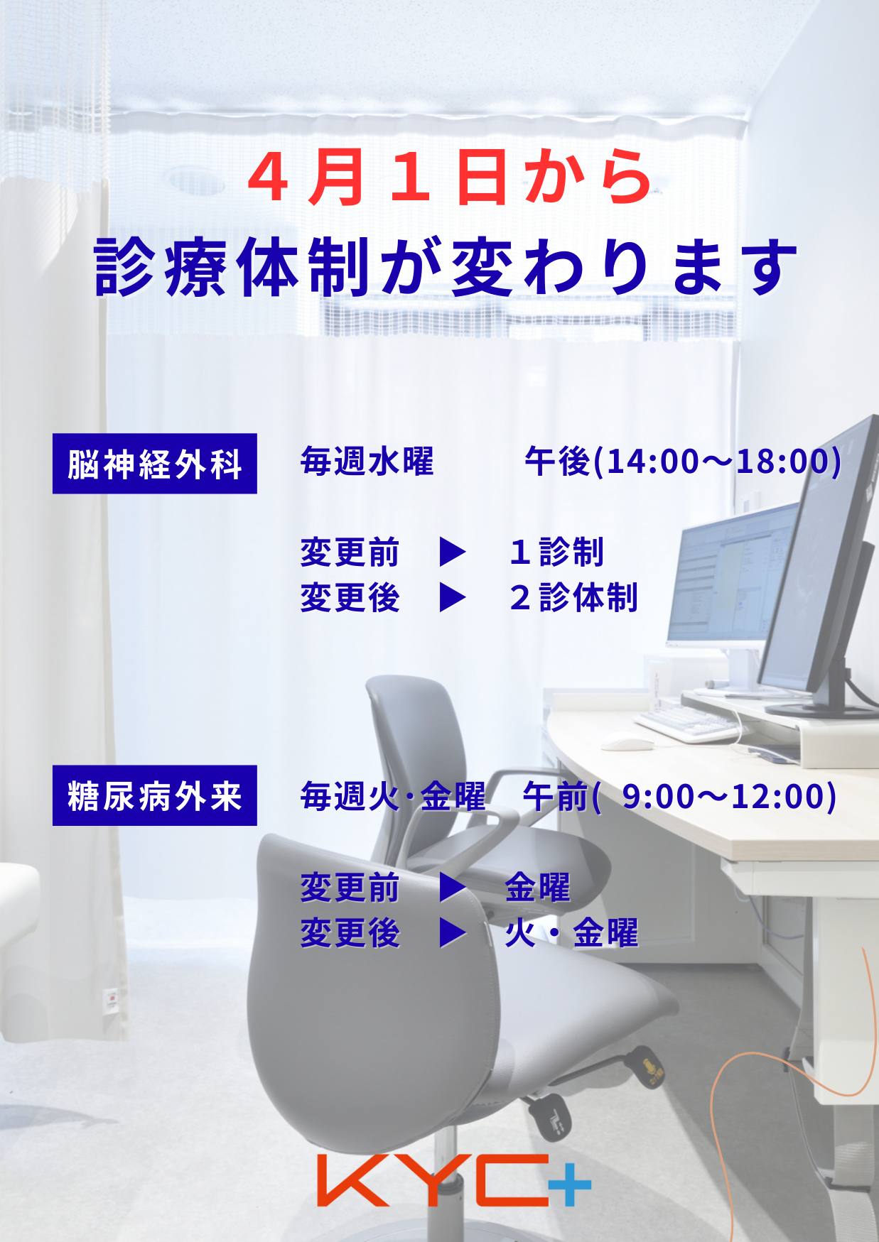 【4/1(水)~】診療体制変更のお知らせ